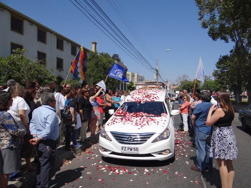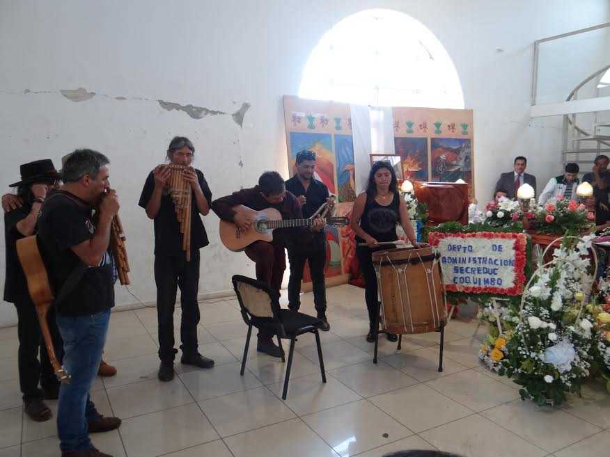 Al finalizar el responso, el cortejo hizo su parada, en el frontis de la Secretaria Regional Ministerial de Educación, lugar en que sus compañeras y compañeros de trabajo lanzaron pétalos de flores multicolores en demostración de su amor entrañable e inmensa gratitud por su legado, momento que fue inmortalizado con la canción “Terrales” de Caupolicán, interpretada con zampoñas, guitarras y bombos, por las agrupaciones Valle de Elqui y Sol del Valle, sus amigos de toda la vida.